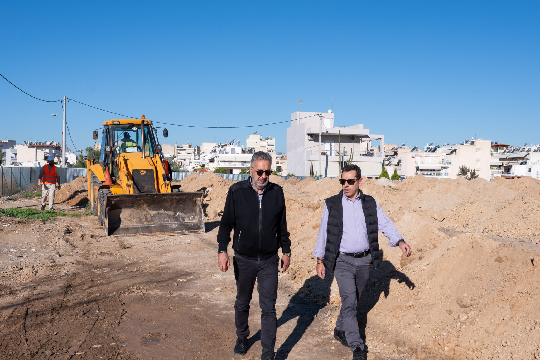 Αυτοψία- επίβλεψη στην περιοχή ΕΚΤΕΛ του Δήμου Αγίου Δημητρίου, όπου άρχισαν οι εργασίες για την κατασκευή του νέου ανοικτού κολυμβητηρίου, πραγματοποίησαν ο Δήμαρχος Αγίου Δημητρίου, Στέλιος Μαμαλάκης και ο Αντιδήμαρχος Τεχνικών Υπηρεσιών και Βιώσιμης Ανάπτυξης, Γεώργιος Κάππος.