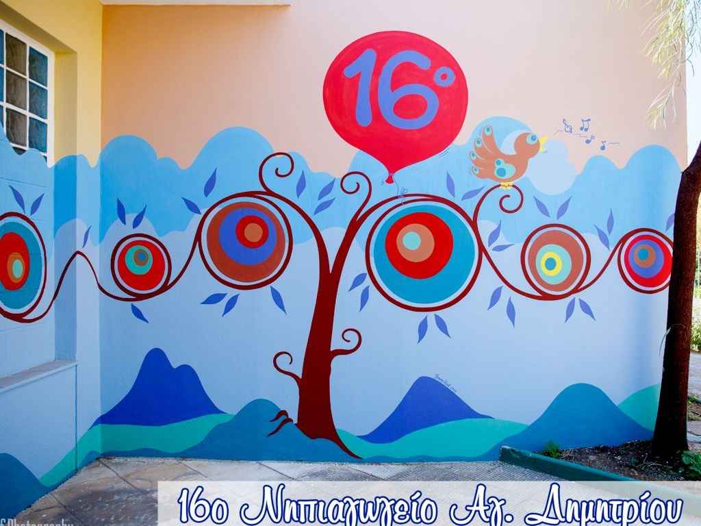 Στο πλαίσιο αυτού του προγράμματος αναβαθμίστηκε το 16ο Νηπιαγωγείο Αγίου Δημητρίου, που βρίσκεται στη συμβολή των οδών Μονεμβασίας & Τσιτσάνη. Το νηπιαγωγείο δέχτηκε εικαστικές παρεμβάσεις που άλλαξαν πάρα πολύ την εξωτερική του όψη.