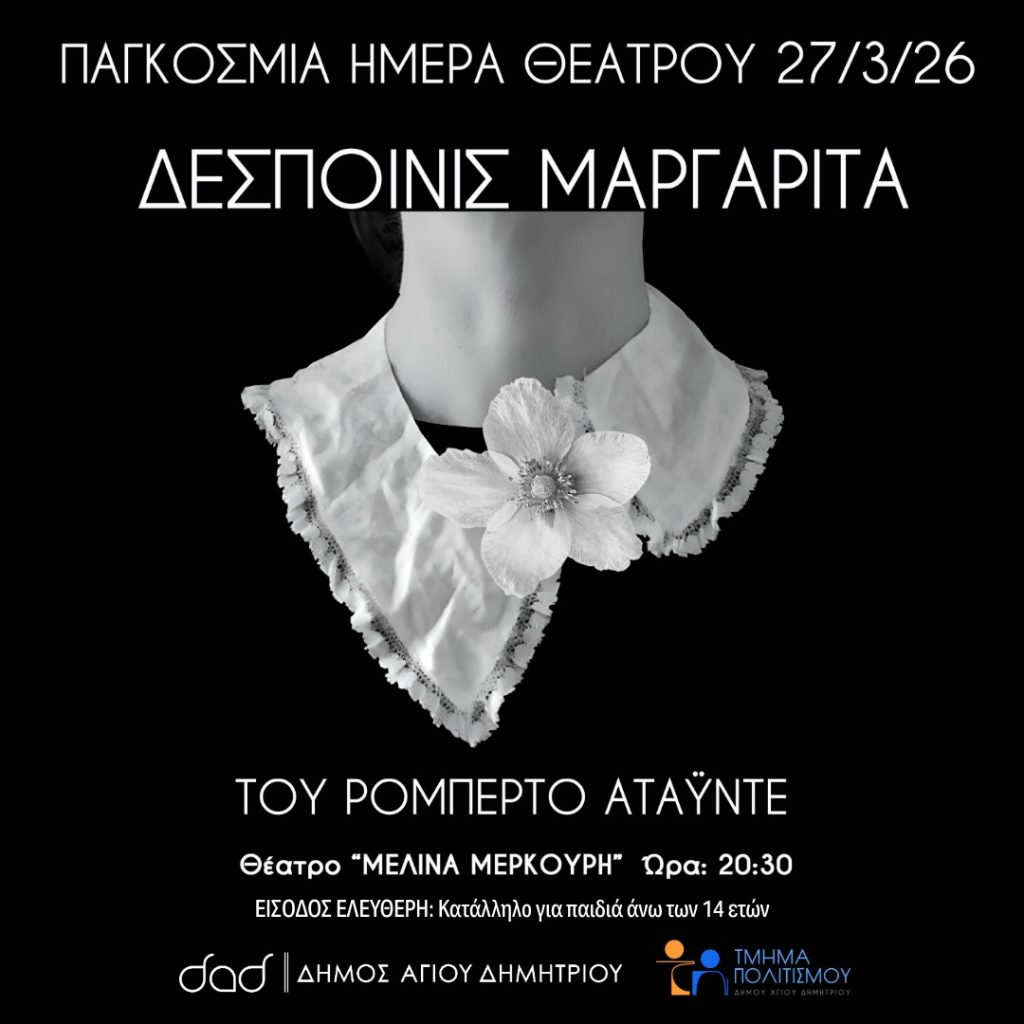Παγκόσμια Ημέρα Θεάτρου (27/3): «Δεσποινίς Μαργαρίτα» από το Θεατρικό Εργαστήρι του Δήμου Αγίου Δημητρίου