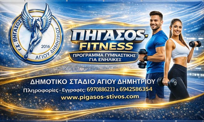Ο Γ.Σ. ΠΗΓΑΣΟΣ Αγίου Δημητρίου, εφαρμόζοντας στην πράξη, τη φιλοσοφία του για άθληση σε όλες τις ηλικίες, δημιουργεί το νέο πρόγραμμα ΠΗΓΑΣΟΣ – FITNESS, ένα οργανωμένο πρόγραμμα άσκησης ειδικά σχεδιασμένο για ενήλικες!
