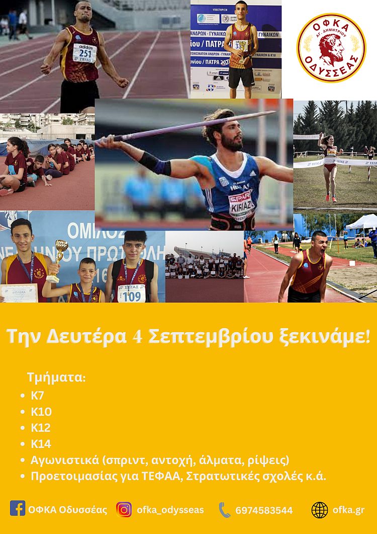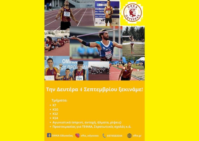 Από τη Δευτέρα 4 Σεπτεμβρίου 2023, ο ΟΦΚΑ Οδυσσέας Αγίου Δημητρίου ξεκινάει τις προπονήσεις στίβου στο Δημοτικό Στάδιο (είσοδος από οδό Μυκόνου) και σας περιμένει!