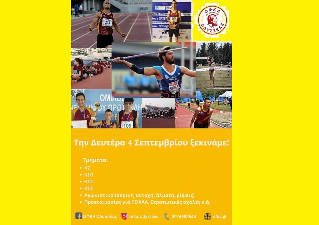Από τη Δευτέρα 4 Σεπτεμβρίου 2023, ο ΟΦΚΑ Οδυσσέας Αγίου Δημητρίου ξεκινάει τις προπονήσεις στίβου στο Δημοτικό Στάδιο (είσοδος από οδό Μυκόνου) και σας περιμένει!