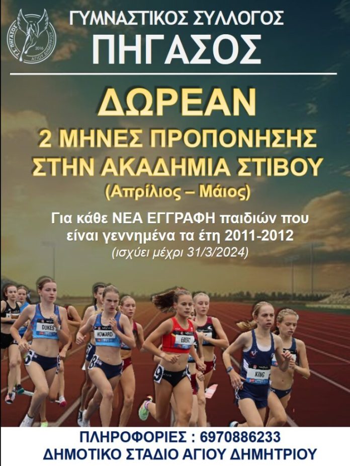 Δωρεάν δύο μήνες προπόνησης από τον Γυμναστικό Σύλλογο Πήγασο Αγίου Δημητρίου