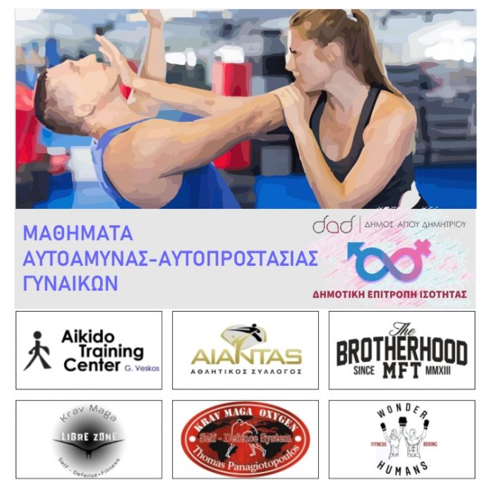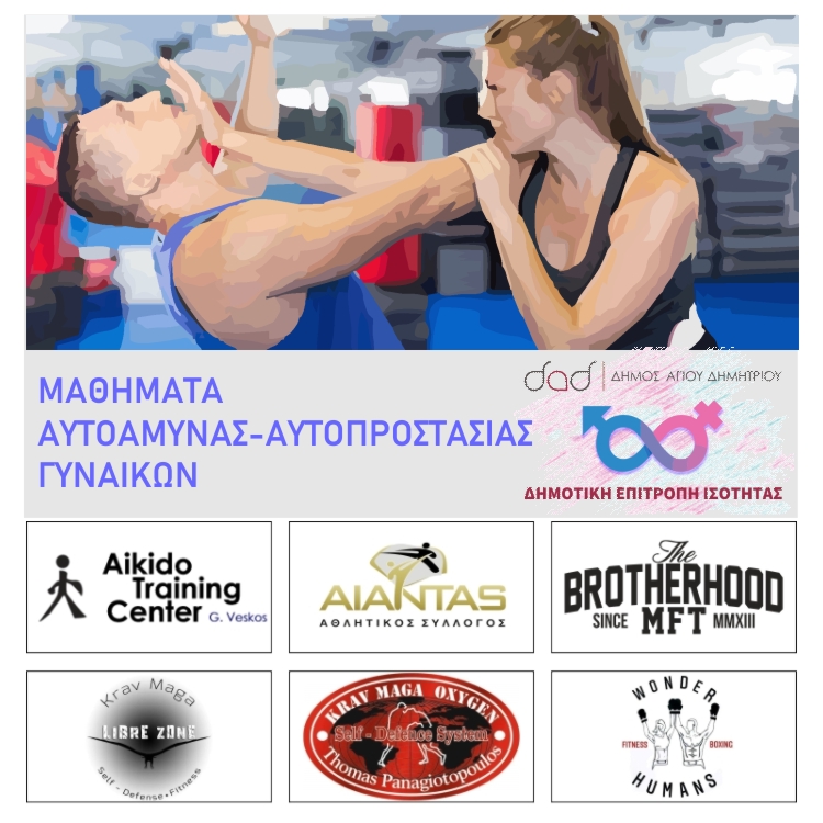 Στο πλαίσιο των δράσεων ενημέρωσης και ευαισθητοποίησης των γυναικών, η Δημοτική Επιτροπή Ισότητας (Δ.Ε.Π.Ι.Σ) του Δήμου Αγίου Δημητρίου, σε συνεργασία με πιστοποιημένες Σχολές Αυτοάμυνας της περιοχής, διοργανώνει πρόγραμμα δωρεάν εκπαίδευσης στην ανάπτυξη ικανοτήτων αντιμετώπισης έμφυλων απειλών και επιθέσεων που μπορεί να δεχθούν οι γυναίκες σε διάφορες περιπτώσεις της καθημερινής ζωής.