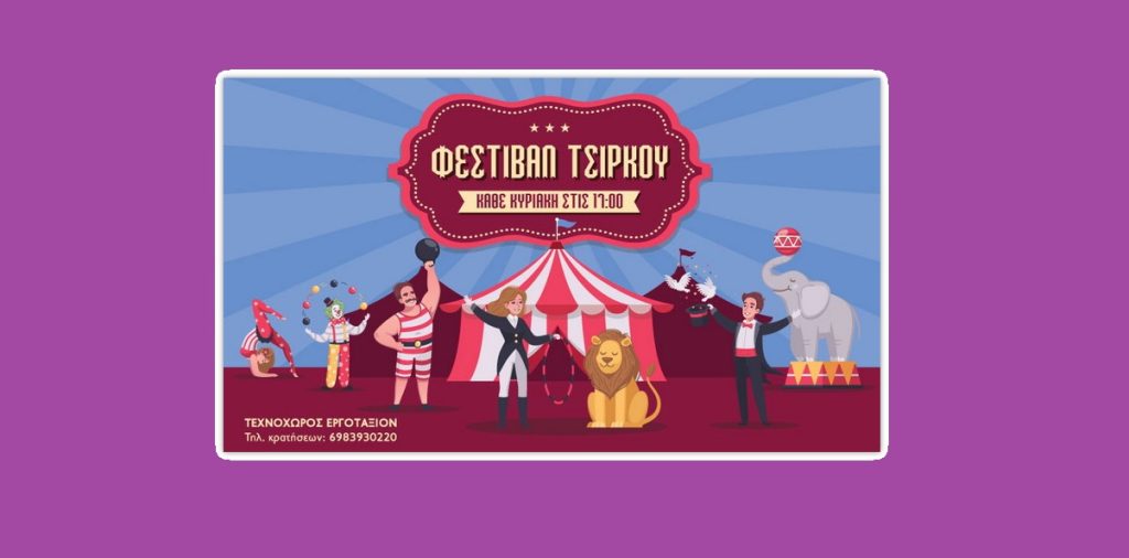 Η νέα παράσταση “Φεστιβάλ Τσίρκου” είναι αφιερωμένη στα παιδιά και περιμένει όλους τους μικρούς φίλους κάθε Κυριακή στις 17:00 στο Εργοτάξιον Πολυχώρος.