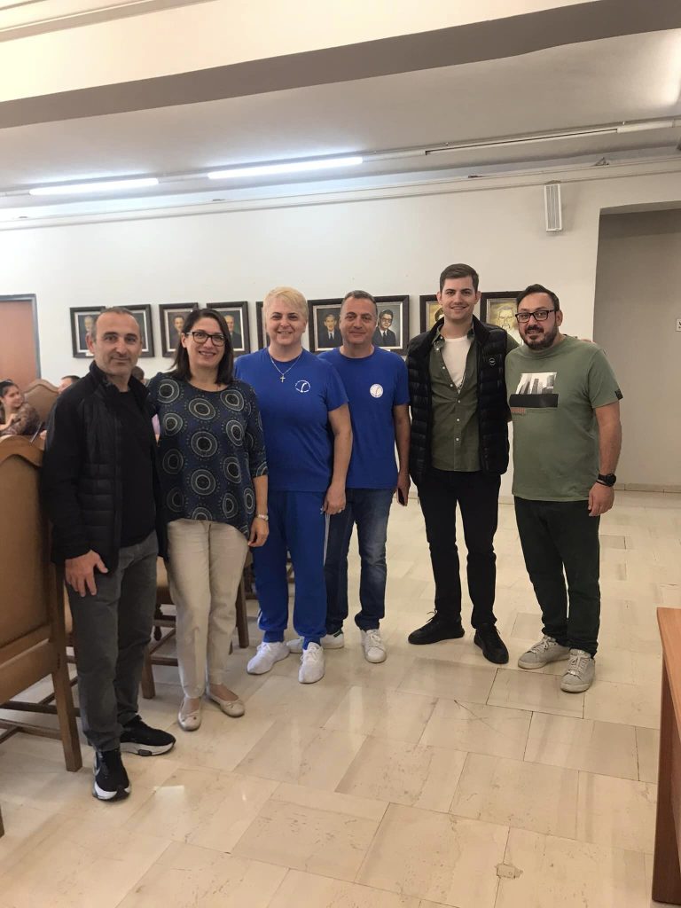 Στη συνάντηση συμμετείχαν ο Πρόεδρος του Οργανισμού Πολιτισμού Αθλητισμού και Περιβάλλοντος Γιάννης Μαθάς και η προπονήτρια της ομάδας «Ευ Αγωνίζεσθαι» Νατάσα Ακτύπη.