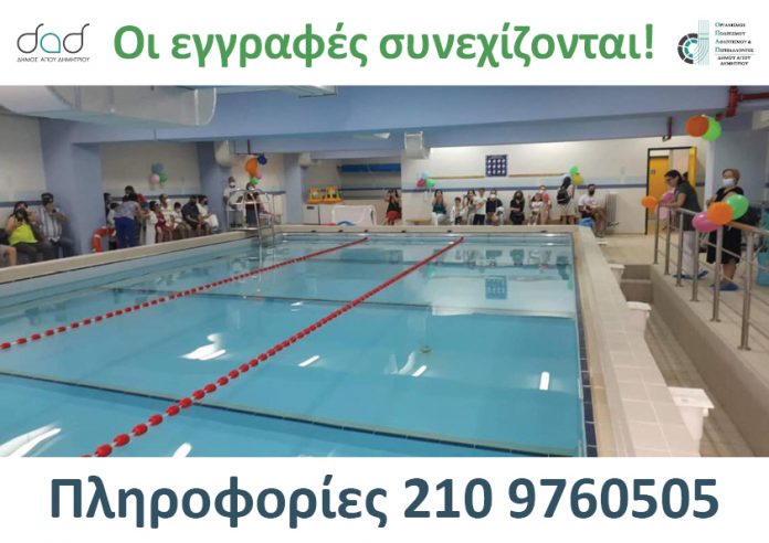 Υπάρχουν ακόμη διαθέσιμες θέσεις για το τμήμα Υδρογυμναστικής Ενηλίκων, για το Κοινό καθώς και για το τμήμα ΑμεΑ.