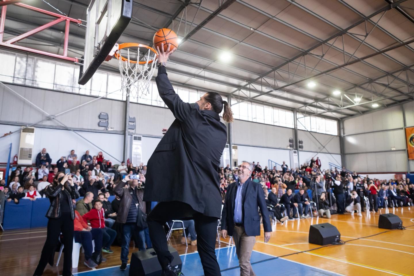 Στη συνέχεια ο διεθνής καλαθοσφαιριστής μοίρασε υπογεγραμμένες μπάλες μπάσκετ σε παρευρισκόμενους και έκανε μια μικρή… επίδειξη των μπασκετικών δυνατοτήτων του, που παρά την απόσυρση του από την ενεργό δράση παραμένουν σε υψηλό επίπεδο!