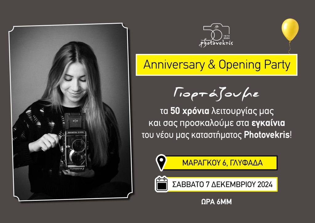 Τα καταστήματα Photovekris γιορτάζουν τα 50 χρόνια λειτουργίας τους εγκαινιάζοντας το νέο τους κατάστημα στη Γλυφάδα, Μαραγκού 6. Τα εγκαίνια του νέου καταστήματος θα πραγματοποιηθούν το Σάββατο 7 Δεκεμβρίου στις 6 μ.μ..