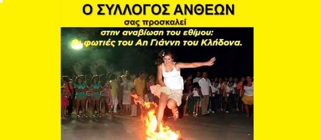 Η μουσική, το κέφι και ο χορός θα επικρατήσει την Κυριακή 23 Ιουνίου, σις 20:00, στην Πλατεία Παναγούλη όπου και θα γίνει αναβίωση του εθίμου του Άη Γιάννη του Κλήδονα.
